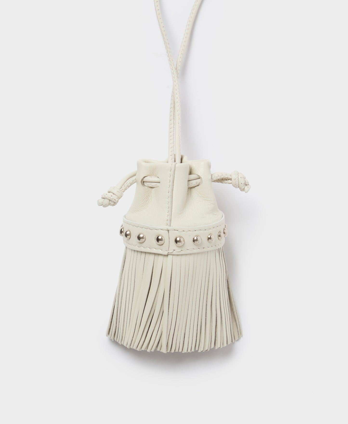 A scaled-down version of our Fringe Carnival bag, the cream miniature charm has a soft leather tubular cord and leather body with a working drawstring. It is the perfect accessory to be worn around the neck or hung on your favourite bag.