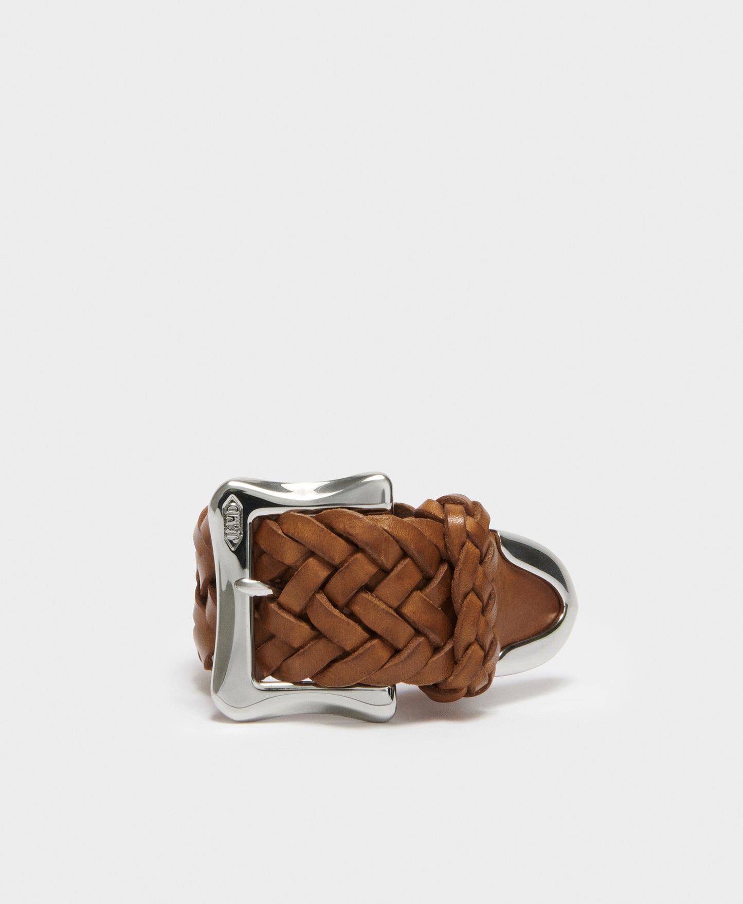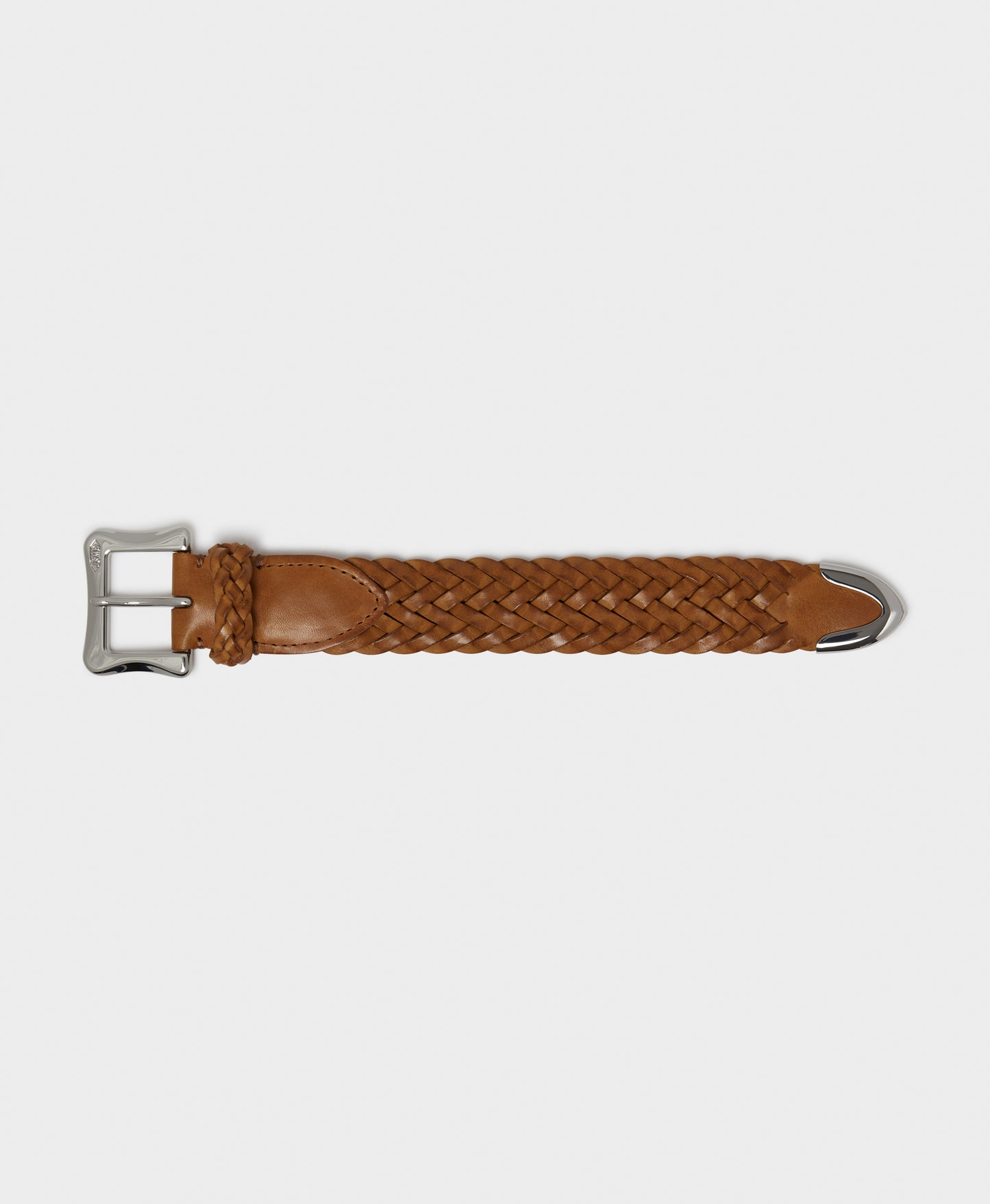 A member of J&M Davidson's belt offering for over 35 years, our plaited belts have now expanded into bracelet form. This stylish bracelet in tan is made from the highest quality aniline leather, known for its suppleness and durability, and features our iconic Envelope Buckle in silver.