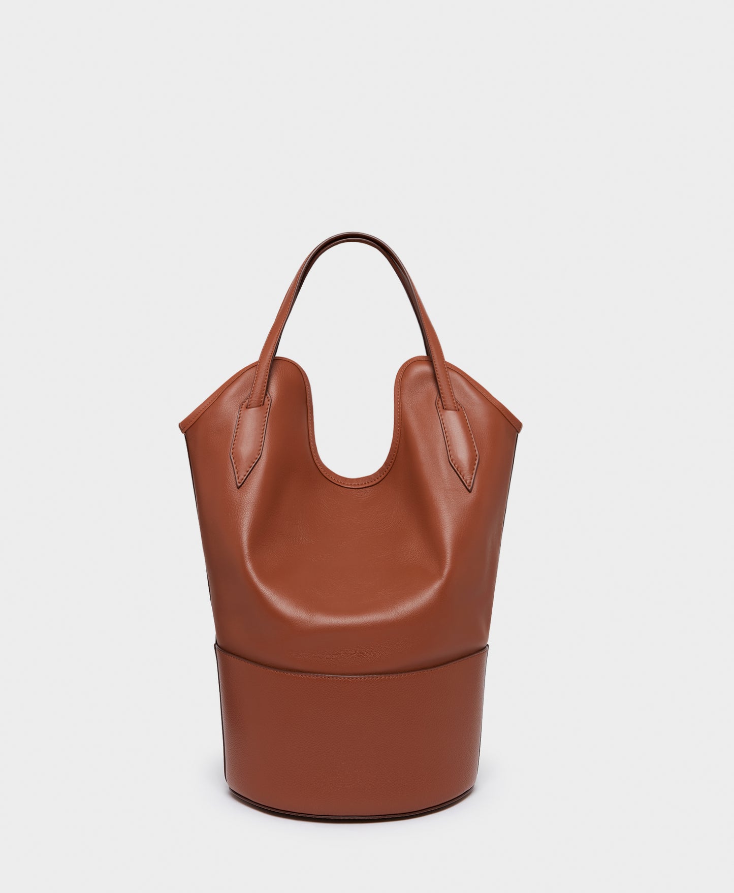 Taking its name from the stingray, whose shape it mimics, the Small Ray Bucket bag in terracotta is a bucket bag made from two types of leather; the bottom is made from small grain and is lined with suede which is both durable and provides texture, and the upper area is made from unlined smooth calf with a suede finish, allowing the bag to be folded and carried under the arm, clutch style. Smaller than our iconic Ray Bucket, the bag can accommodate a 13” laptop as well as everyday essentials.