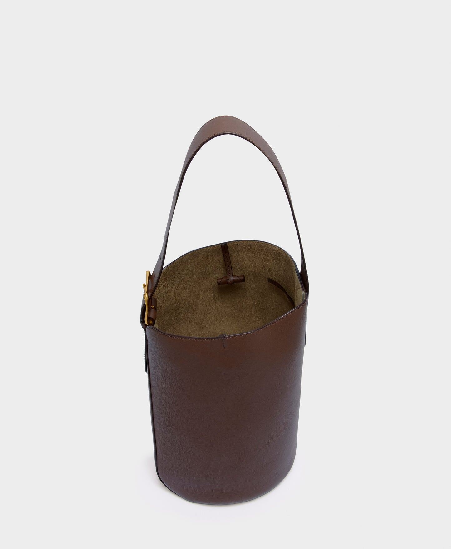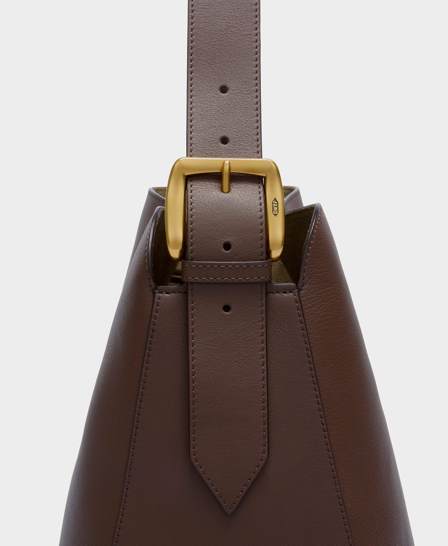 A uniquely shaped bag inspired by archers' quivers. With statement embossed hardware, the bag is made from cacao smooth calf leather and lined with suede. The bag is large enough to fit a laptop, and the adjustable handle allows the bag to be carried over the shoulder or in hand.