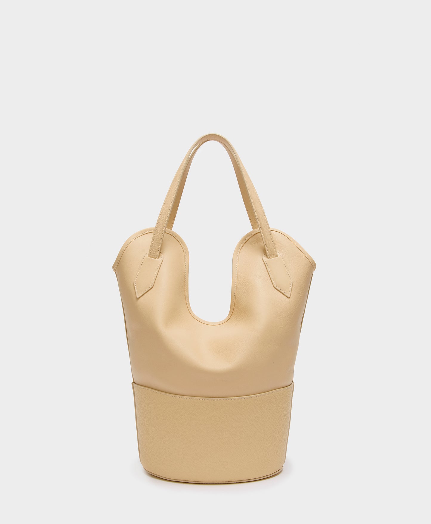 Taking its name from the stingray, whose shape it mimics, the Small Ray Bucket bag in powder is a bucket bag made from two types of leather; the bottom is made from small grain and is lined with suede which is both durable and provides texture, and the upper area is made from unlined smooth calf with a suede finish, allowing the bag to be folded and carried under the arm, clutch style. Smaller than our iconic Ray Bucket, the bag can accommodate a 13” laptop as well as everyday essentials.