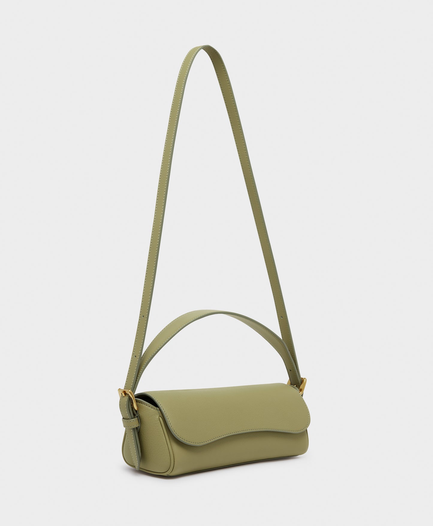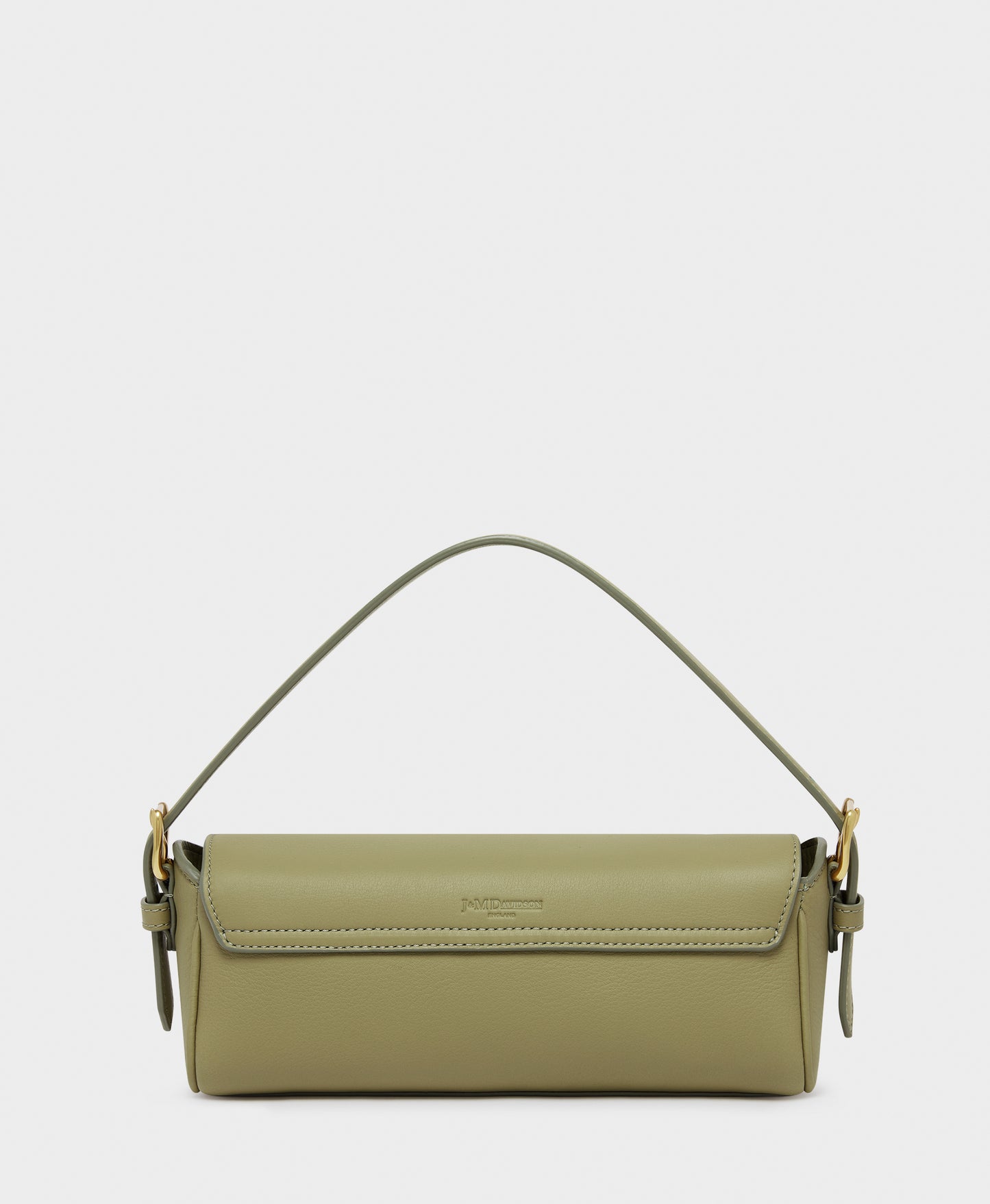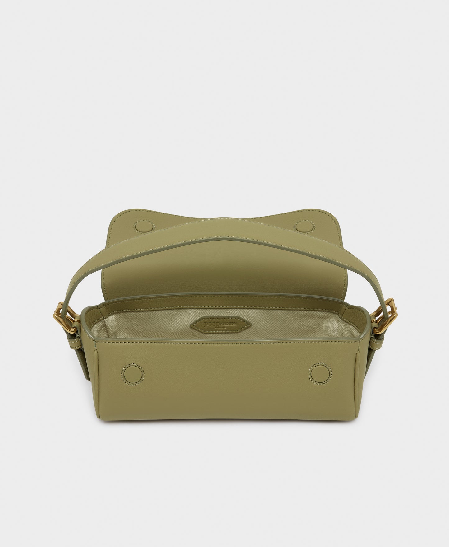 A member of the Bonny family, the Bonny Baguette is a compact bag with a utilitarian shape and smart hand strap, allowing it to be carried in a multitude of ways. The bag is made from moss-coloured natural grain leather and lamb nappa trimming and has a discreet magnet closure.