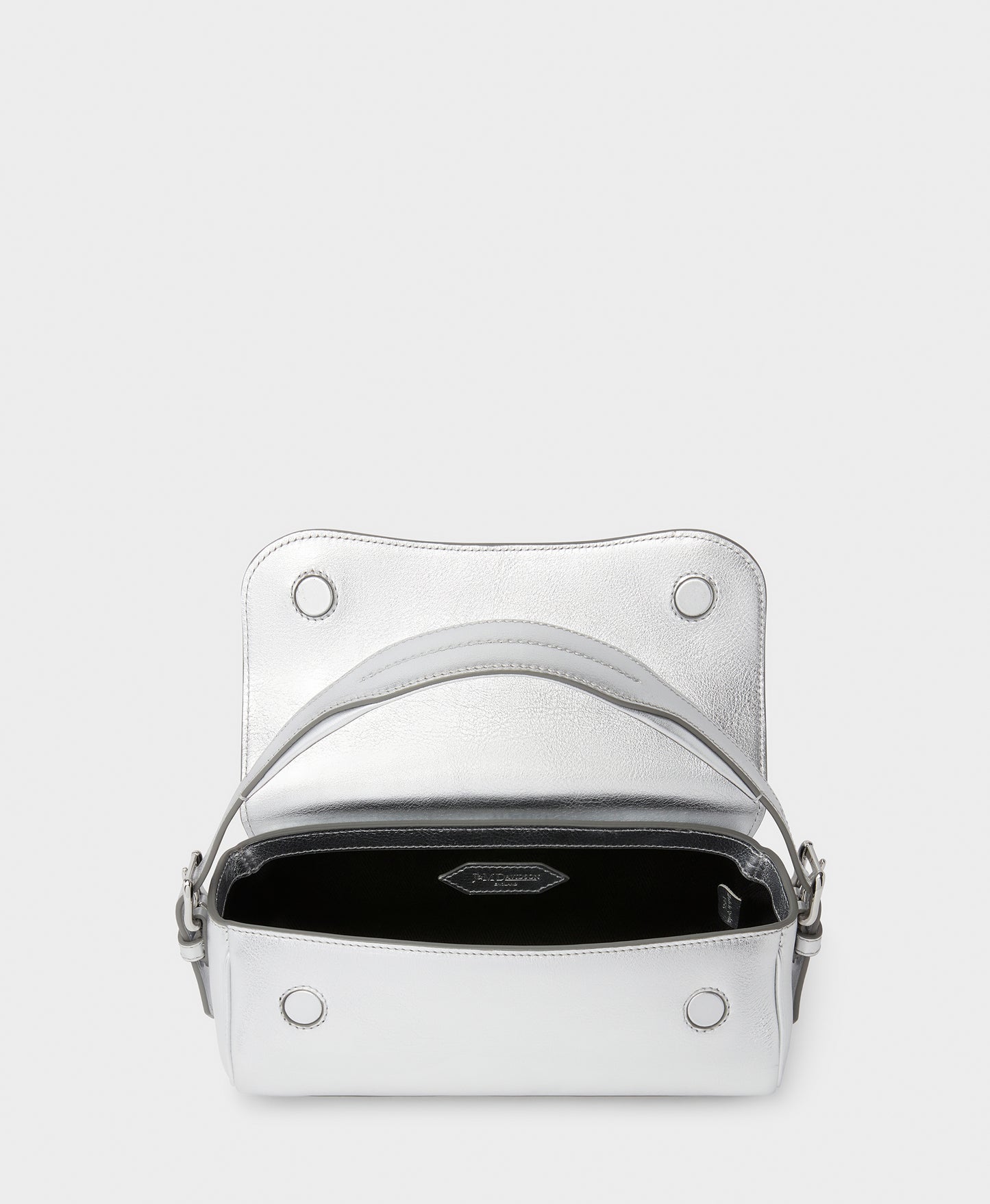 A new addition to the Bonny family, the Bonny Baguette is a compact bag with a utilitarian shape and smart hand strap, allowing it to be carried in a multitude of ways. The bag is made from metallic calf leather and lamb nappa trimming and has a discreet magnet closure.