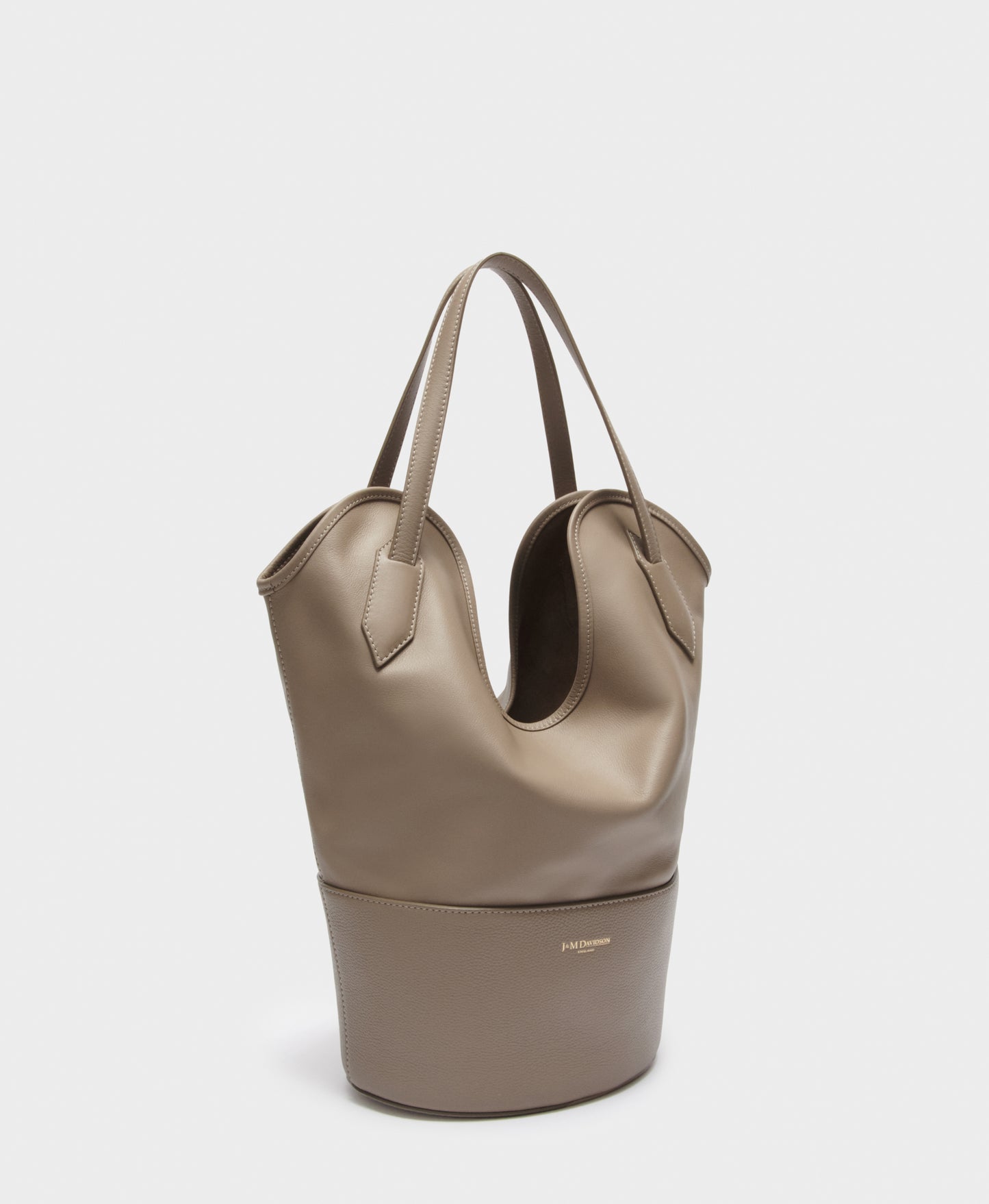 Taking its name from the stingray, whose shape it mimics, the Small Ray Bucket bag in taupe is a bucket bag made from two types of leather; the bottom is made from small grain and is lined with suede which is both durable and provides texture, and the upper area is made from unlined smooth calf with a suede finish, allowing the bag to be folded and carried under the arm, clutch style. Smaller than our iconic Ray Bucket, the bag can accommodate a 13” laptop as well as everyday essentials.