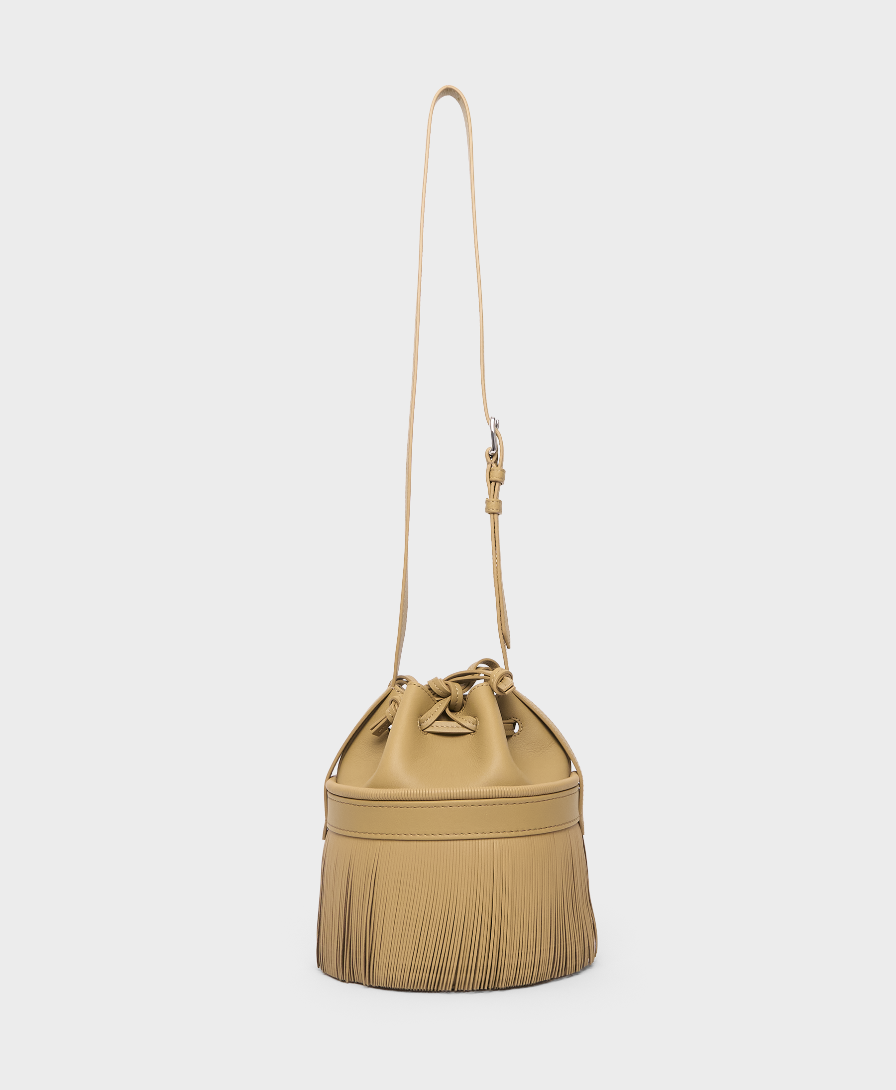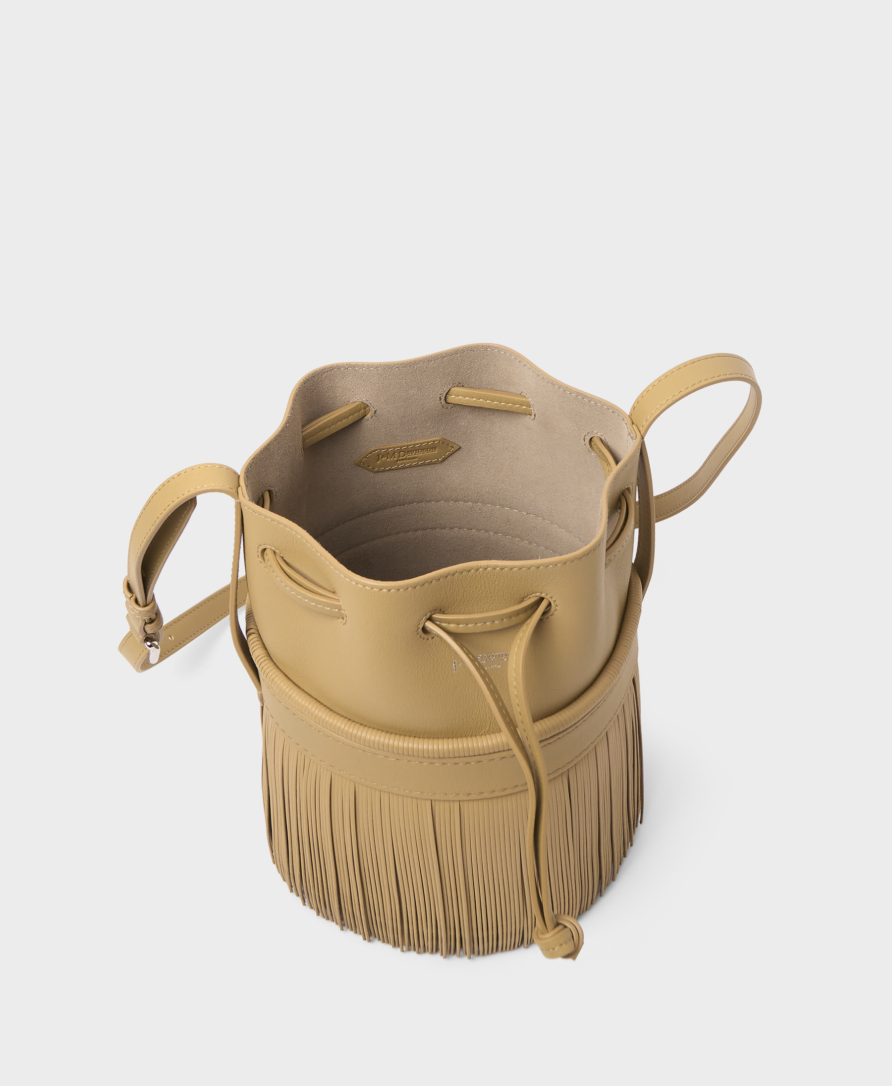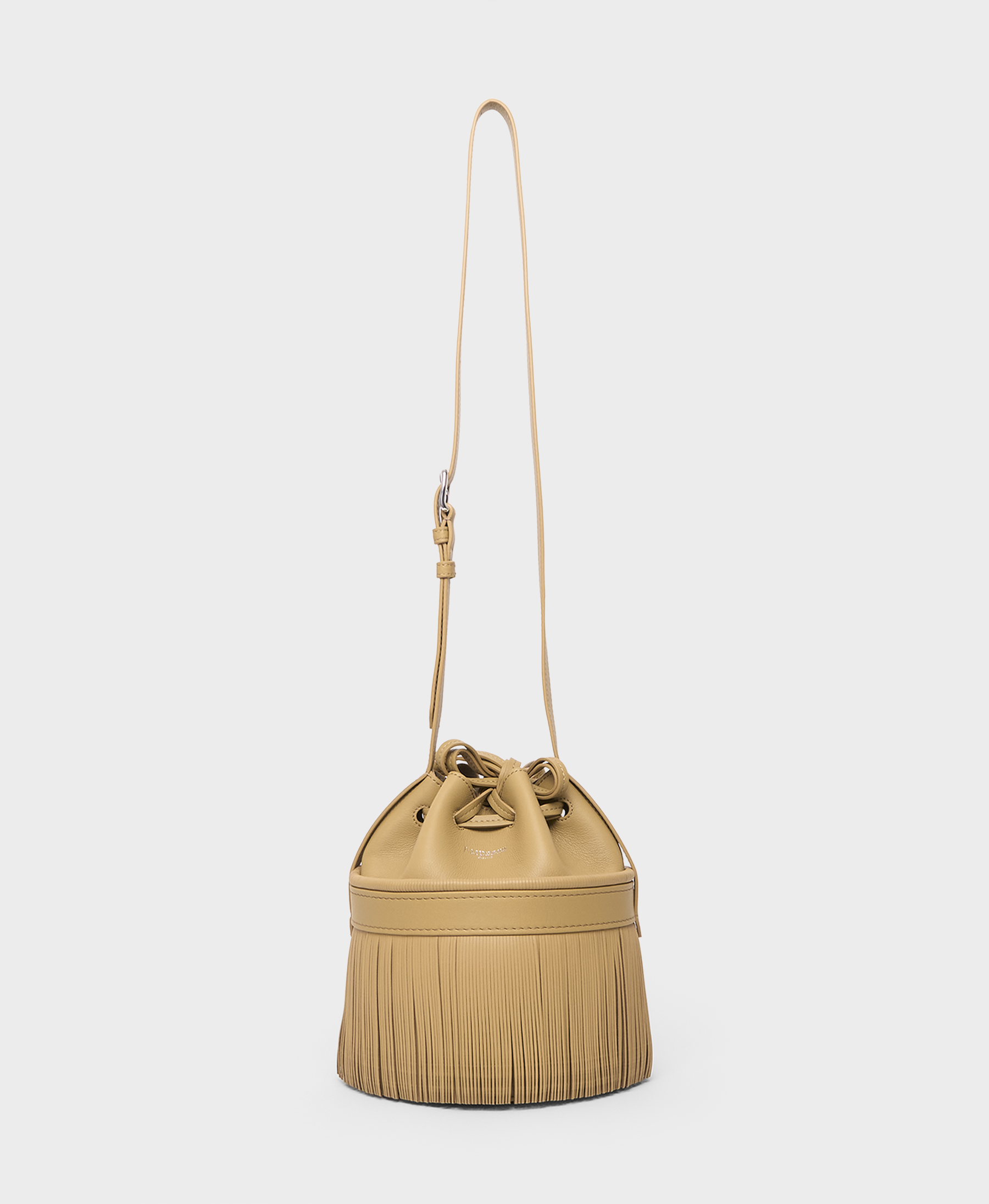 The perfect occasion bag, the Anniversary Carnival is a member of the Carnival family and is made from dijon smooth calf and lamb nappa leather. Featuring fringing and a drawstring fastening, it differs from its predecessor with a new long leather strap, which is accessorised by the statement J&MD brass buckle.