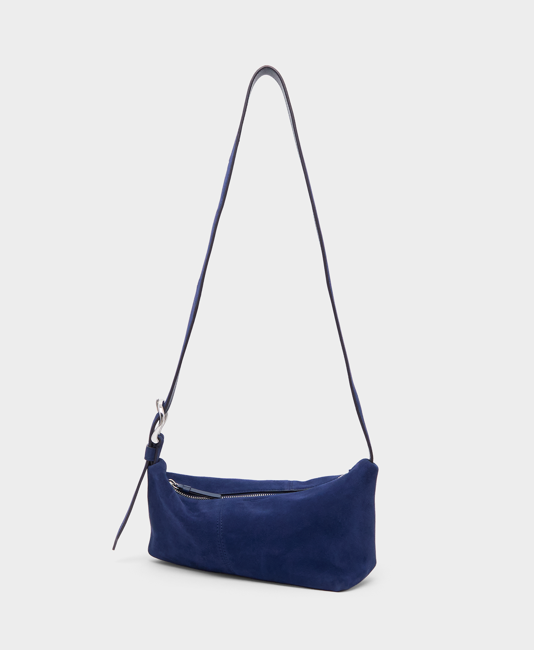 A new addition to the collection, the Disk Twist in Marine is a larger, more casual interpretation of our classic Twist bag. Crafted from soft suede and smooth calf leather, it features the Disk Buckle introduced last season and is designed as a spacious everyday shoulder bag. The adjustable strap allows it to be worn on the shoulder or crossbody, offering versatility for daily use.