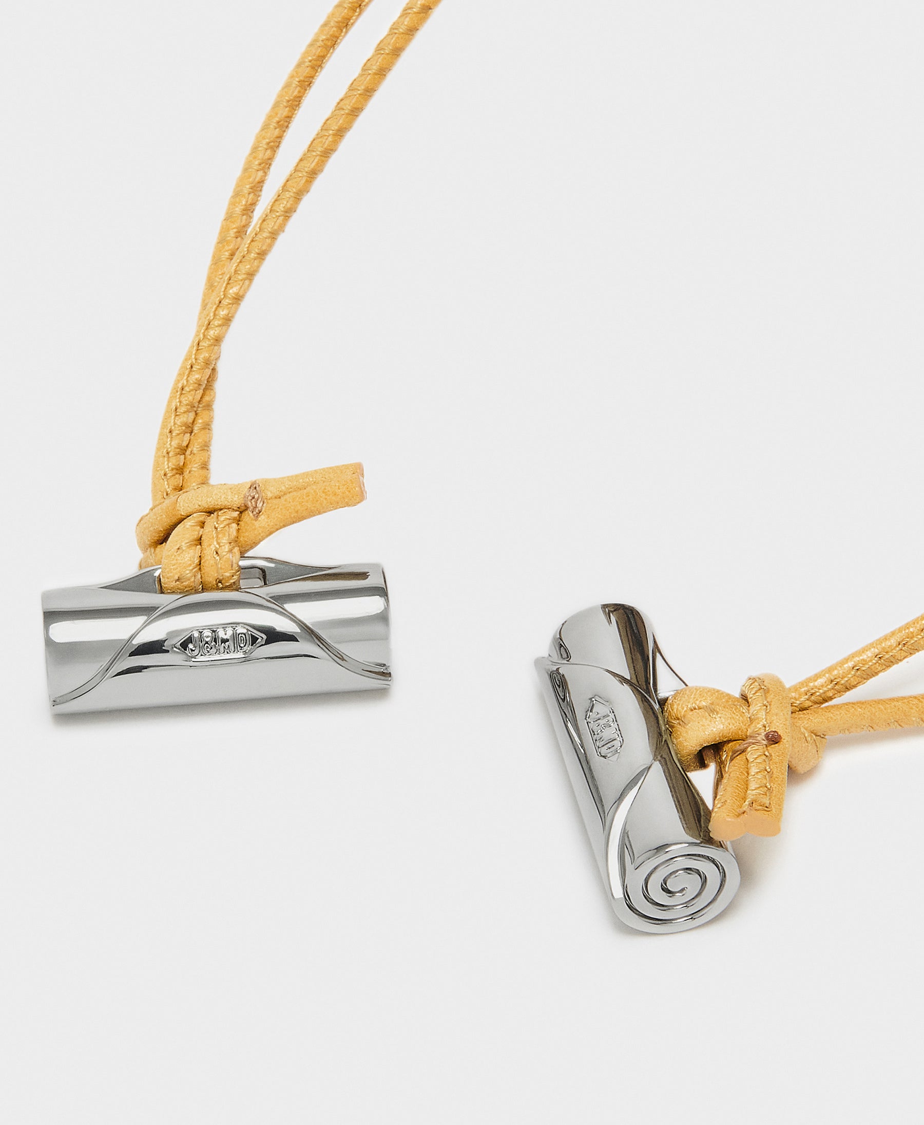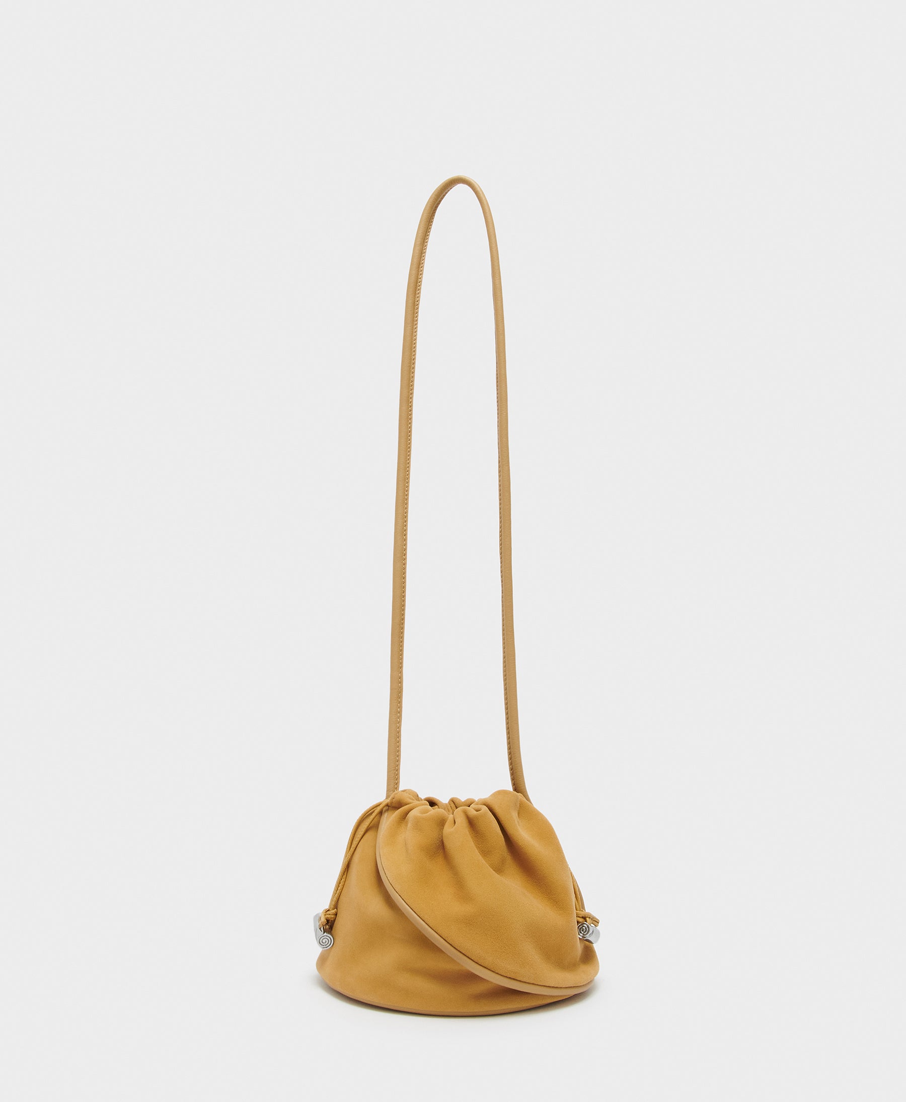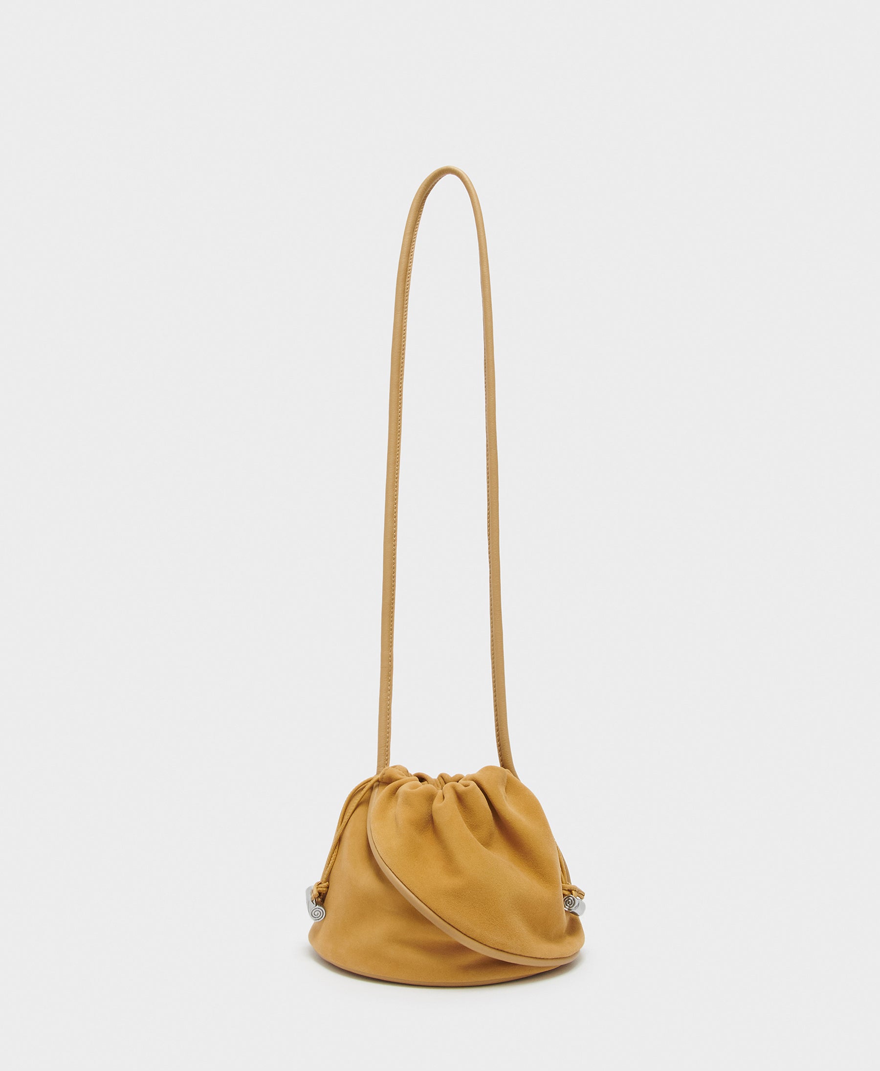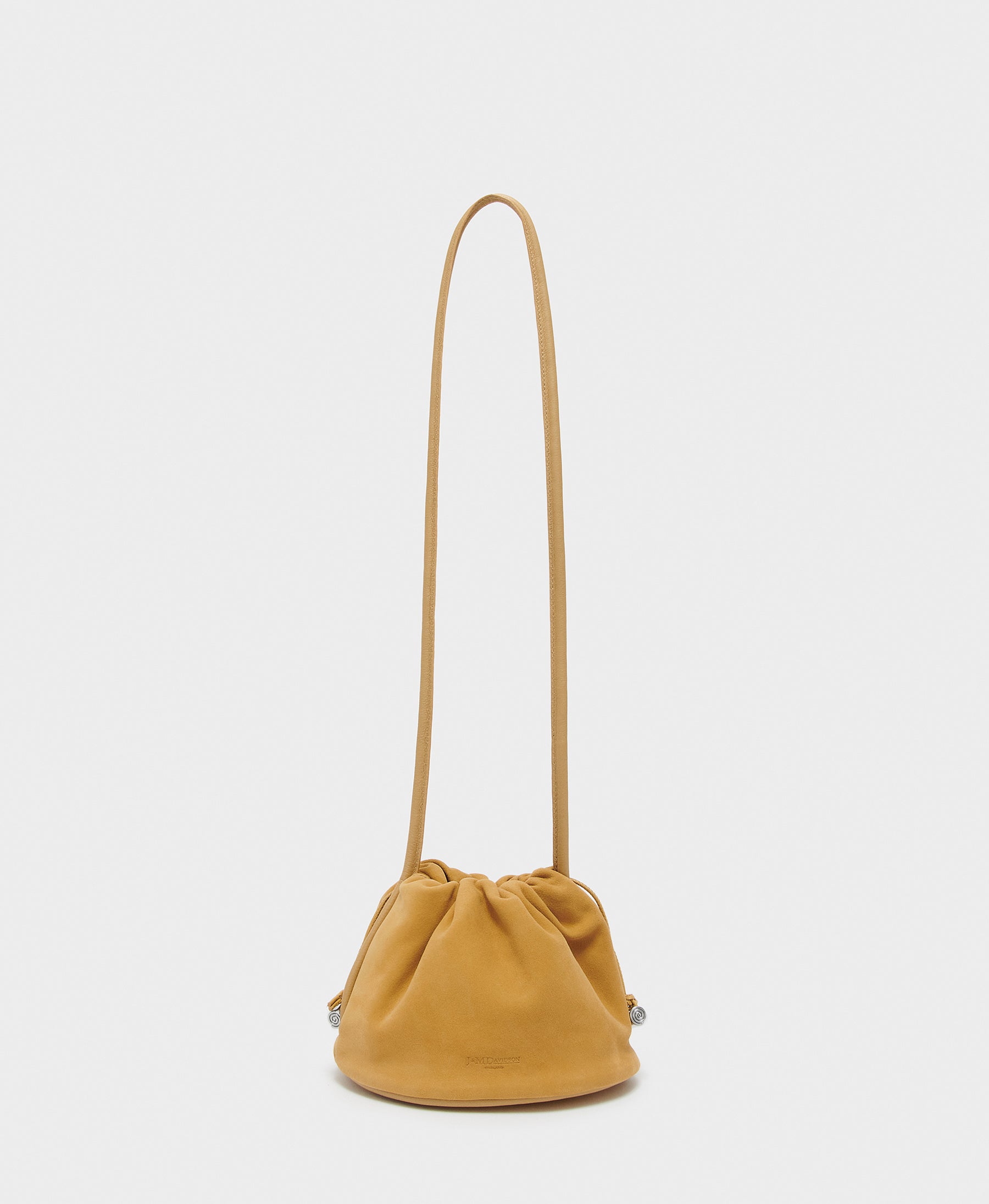 The Escargot is a mini drawstring pouch bag with a design inspired by the shape of a snail. Crafted from dijon-coloured goat suede, it's known for its plush, velvety texture and superior durability. The bag also features branded silver hardware that adds an elevated finish. Spacious enough to fit a phone and other small essentials, this versatile bag is suitable for any occasion.