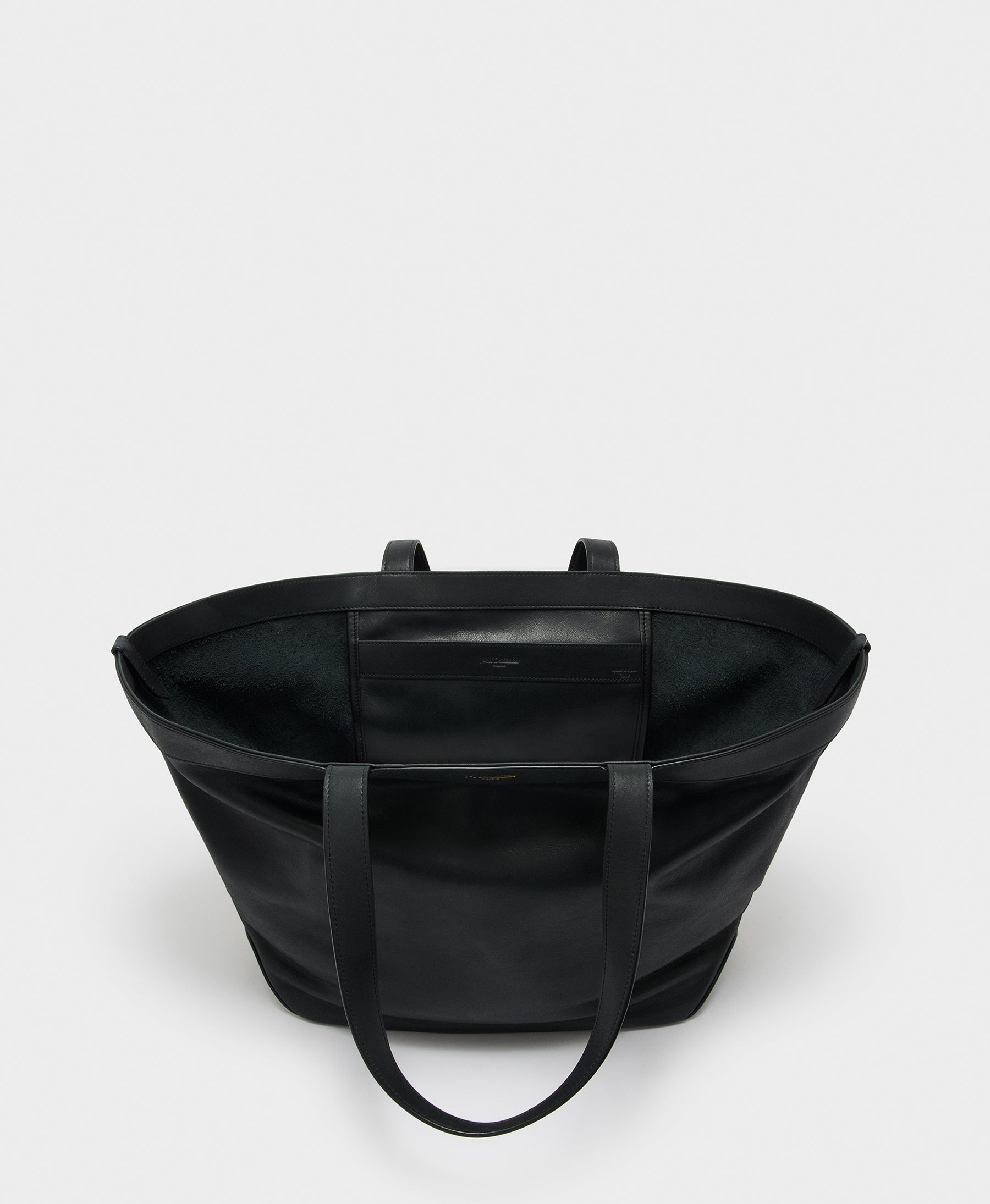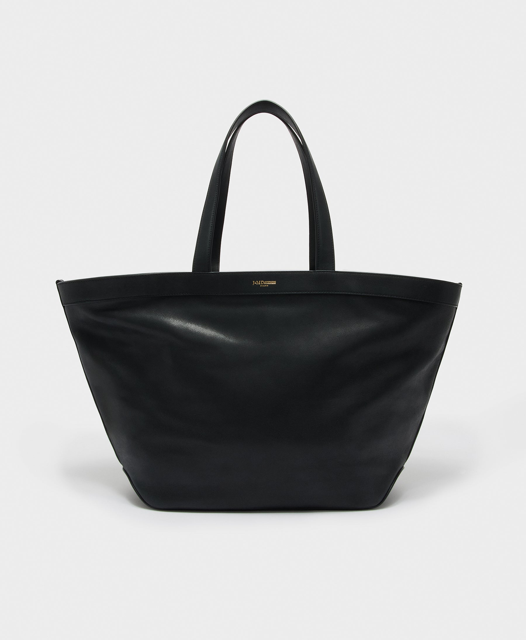 A modern revival of a vintage J&MD archive piece, the Large Voyage Tote is a versatile bag perfect for the woman on the go, seamlessly transitioning from work to weekend getaways. Handcrafted in Spain from smooth black calf leather, this spacious design is ideal for travel—whether near or far.