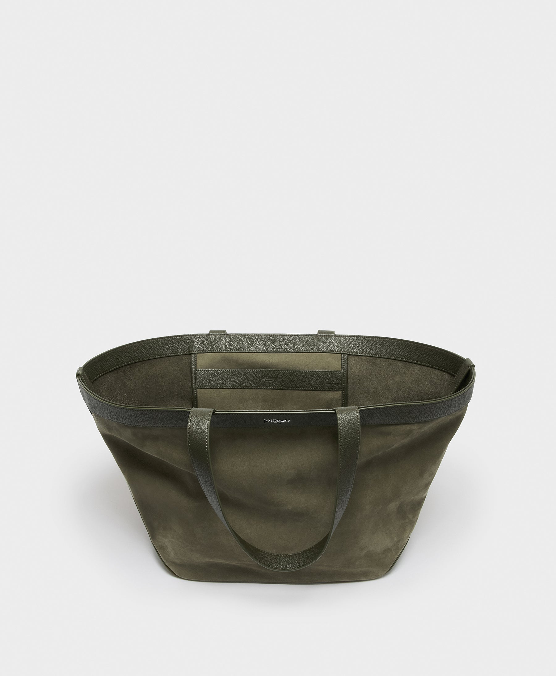 A modern revival of a vintage J&MD archive piece, the Large Voyage Tote is a versatile bag perfect for the woman on the go, seamlessly transitioning from work to weekend getaways. Handcrafted in Spain from pickle-coloured nubuck leather, known for its strength, durability, and soft, velvety feel. This spacious design is ideal for travel—whether near or far.
