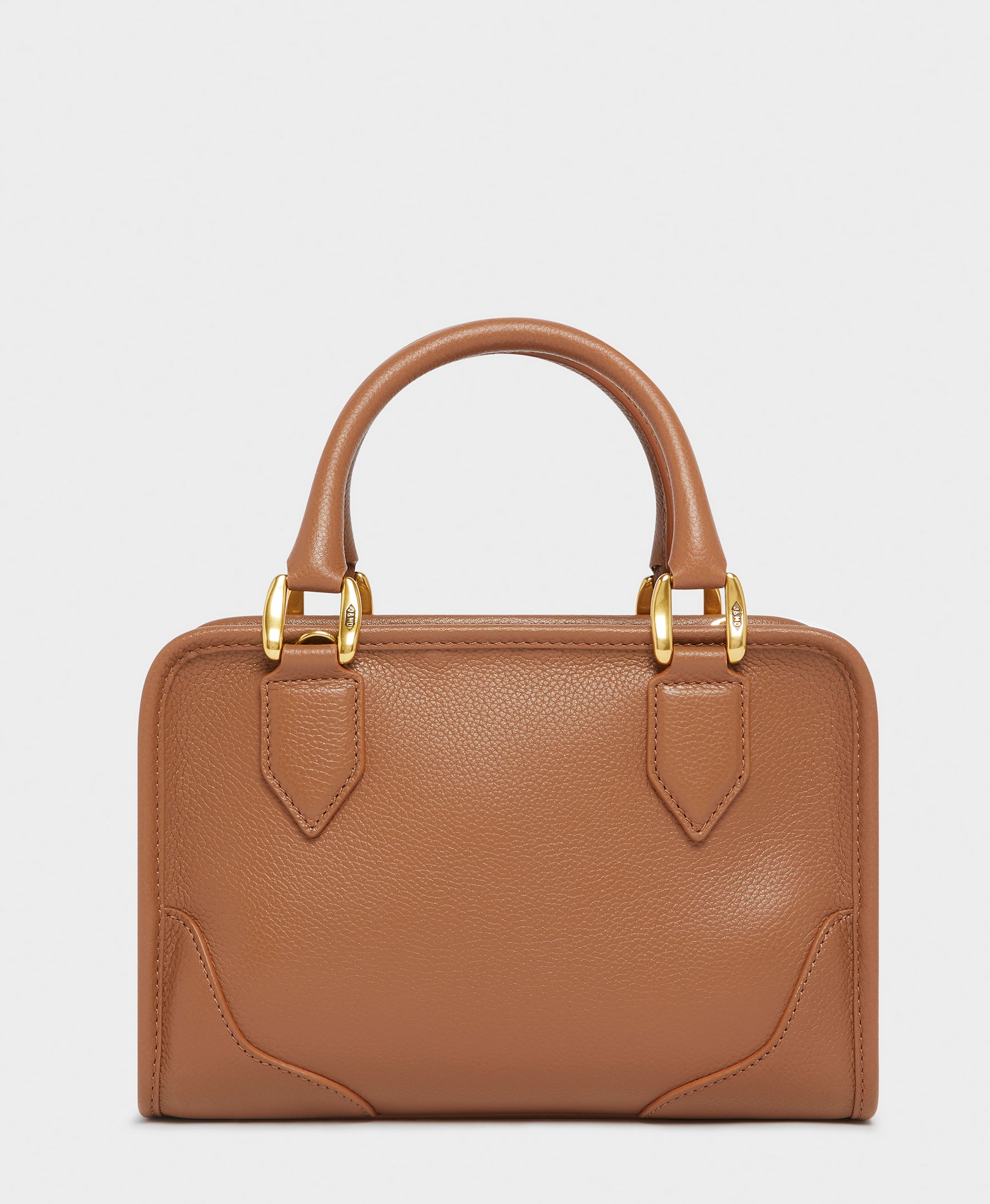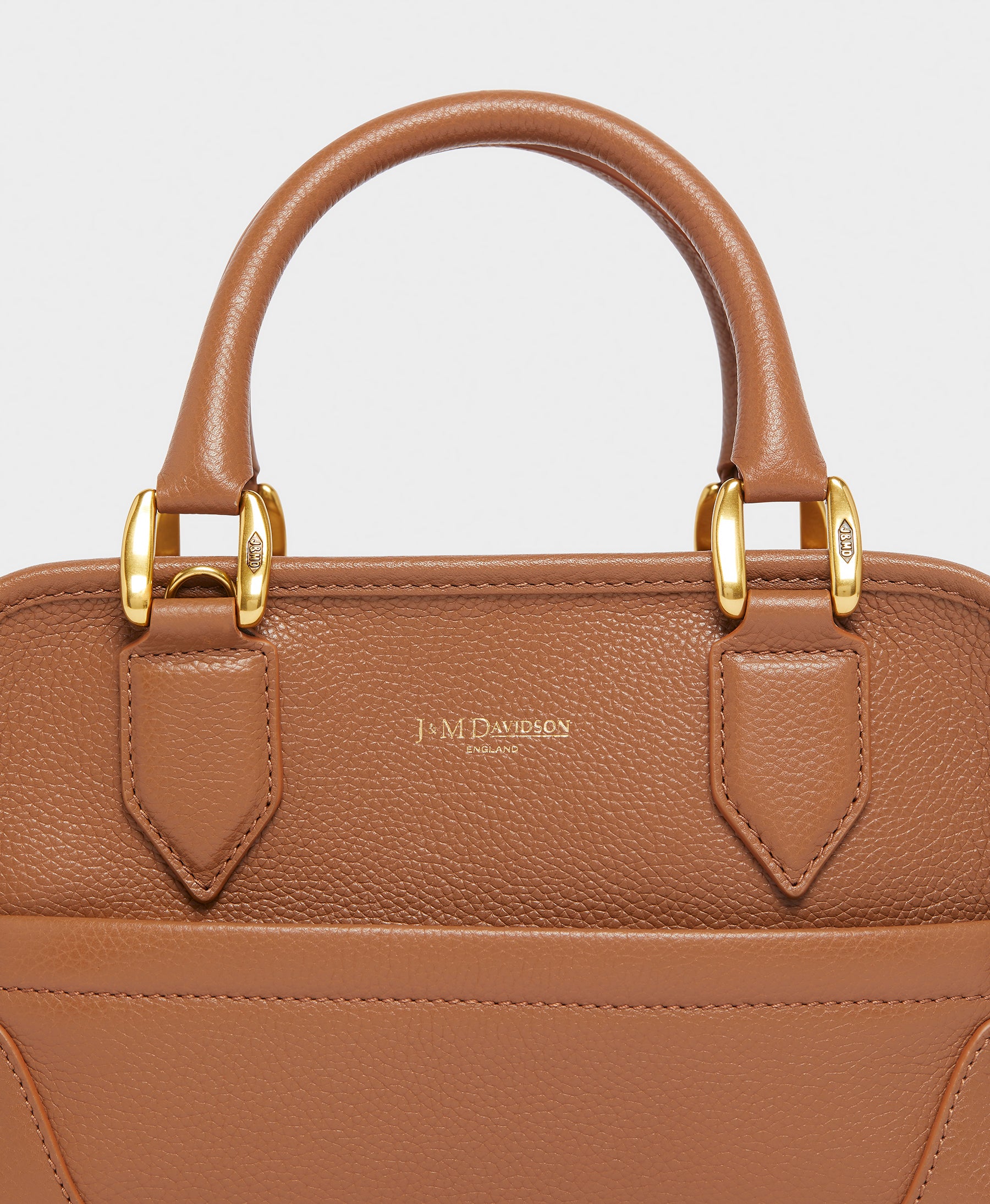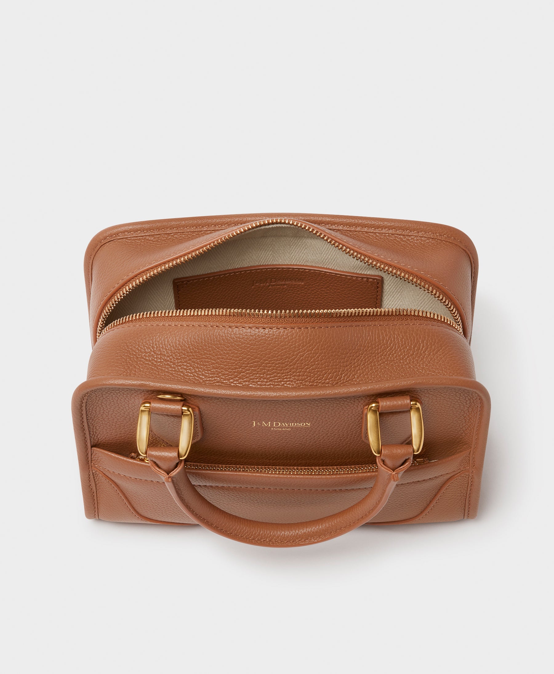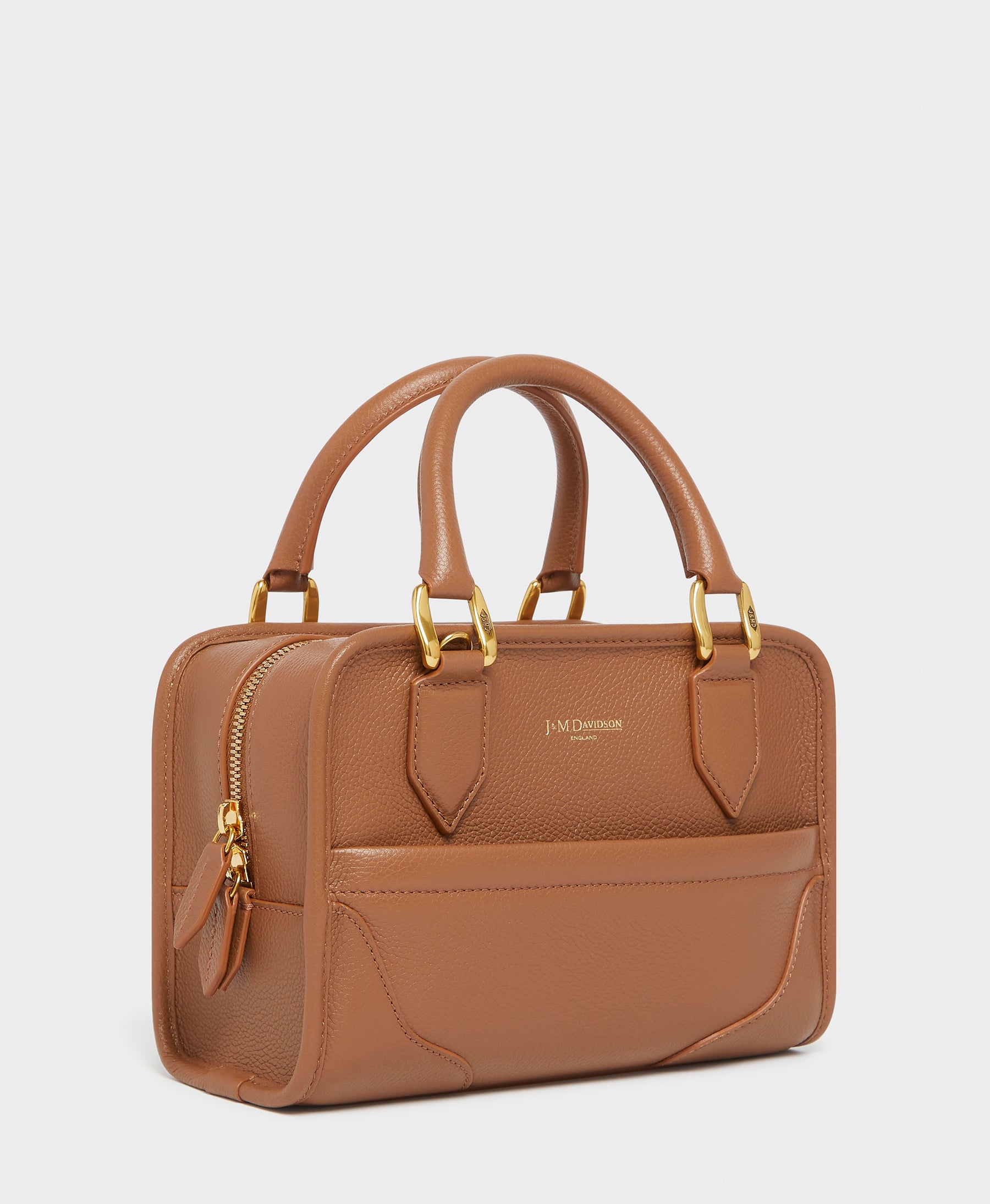 Inspired by an archival bag, the Mini Cube Mia is a small top-handle bag made from toffee small grain leather and lined with cotton herringbone. It is just big enough for the essentials and features J&MD's classic brass hardware, and it has an additional adjustable strap, allowing it to be carried crossbody style.