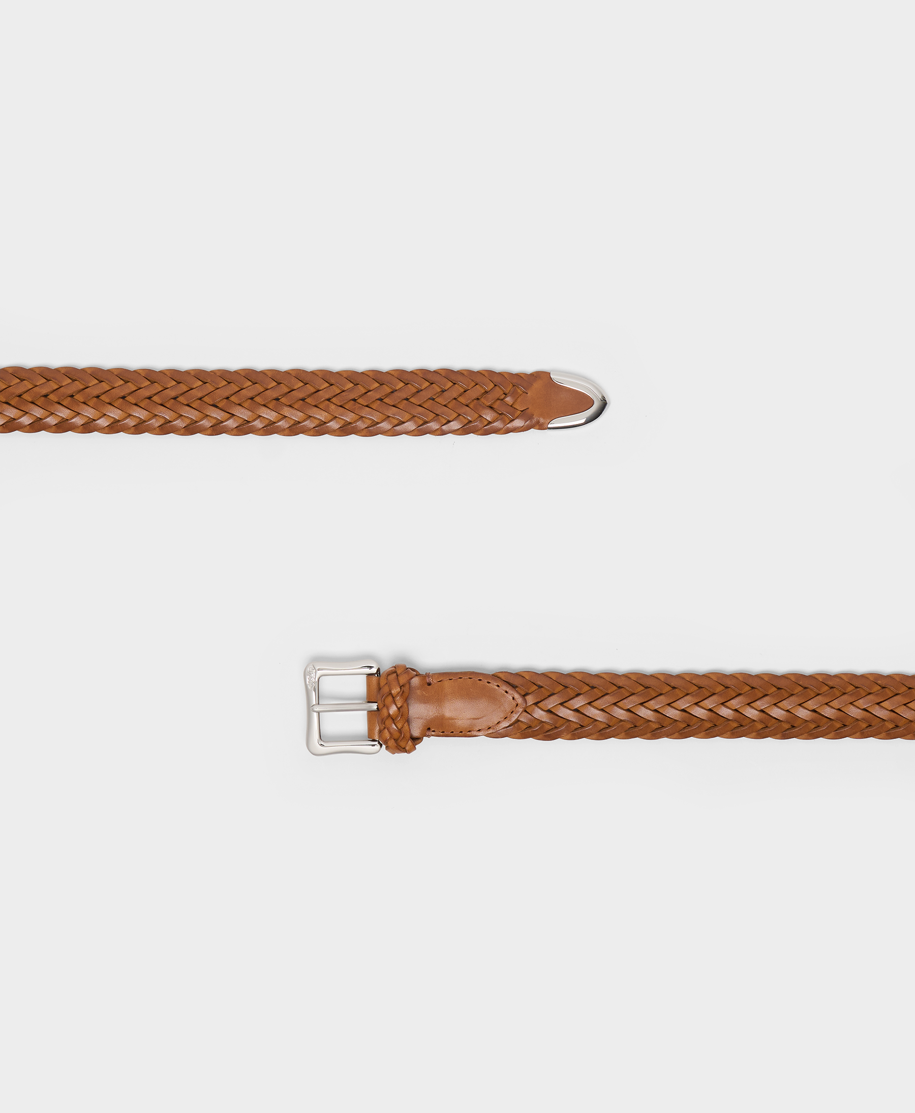 Inspired by the first-ever J&M Davidson belt, the 25mm Plaited Envelope Buckle belt in tan is made from the highest quality aniline leather, known for its suppleness and durability. This stylish belt is intricately crafted and complemented by our signature brass envelope buckle in silver.