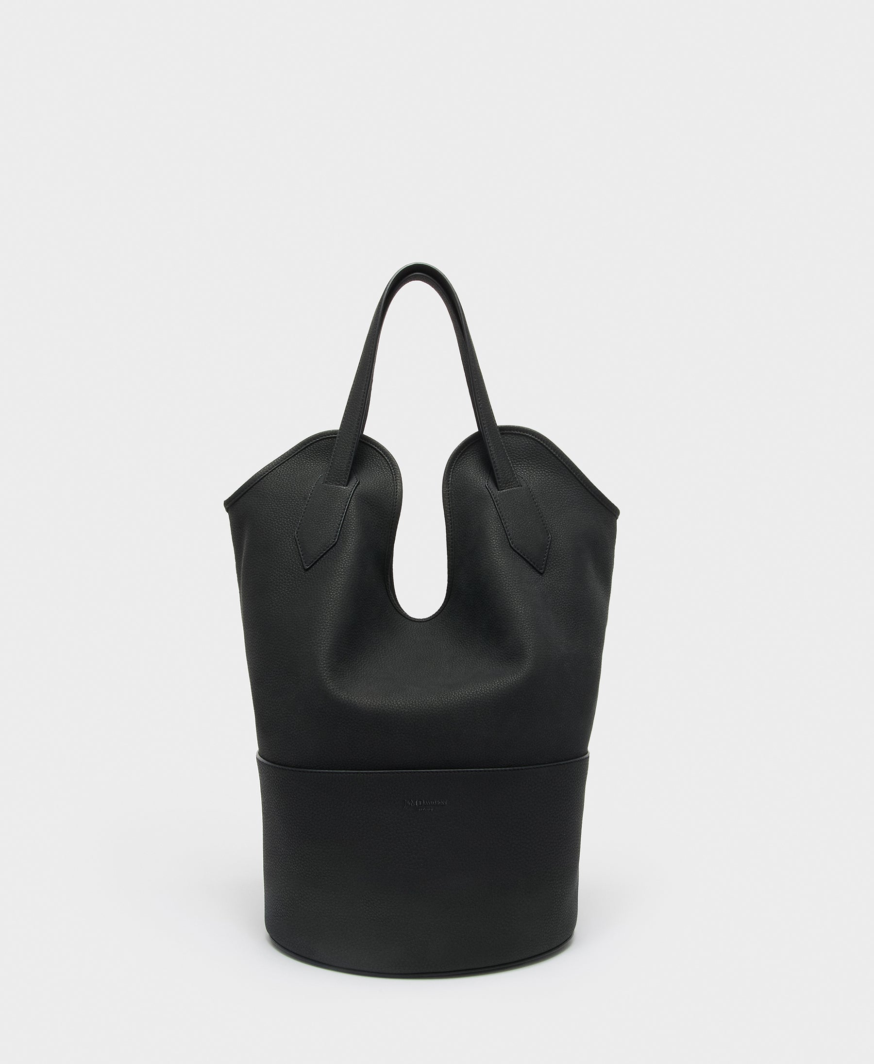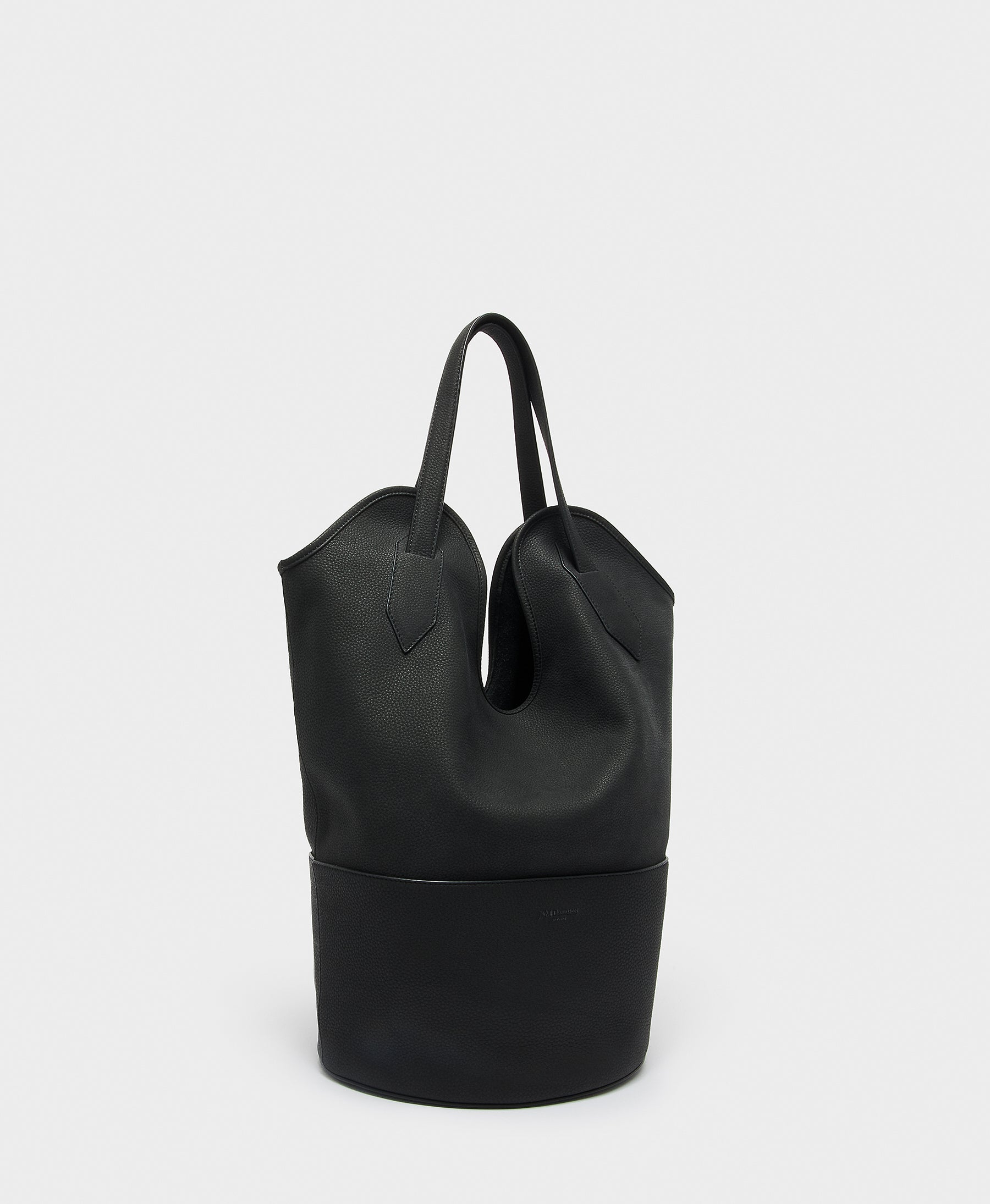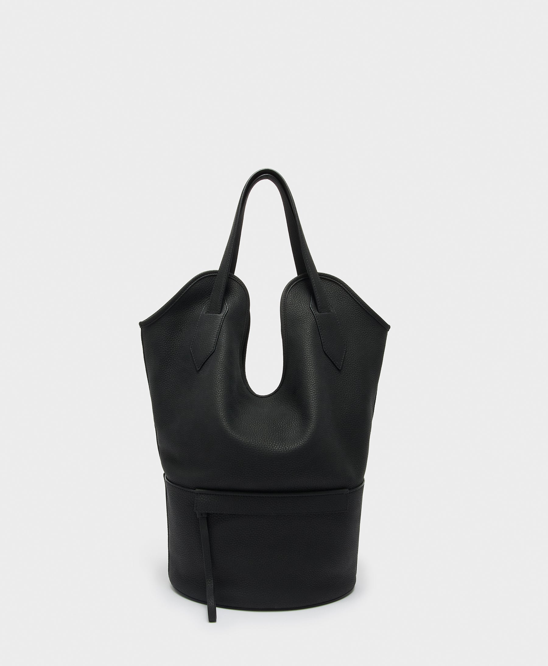 Taking its name from the stingray, whose shape it mimics, the Ray Bucket bag in black is handcrafted in Spain and is made from soft and silky pebbled nubuck. This leather is gold rated for its sustainability by the Leather Working Group and is known as one of the finest leathers used in the luxury leather goods industry. Lined with suede, this bucket bag is designed to be worn over the shoulder, but it can be folded and carried under the arm, clutch style.