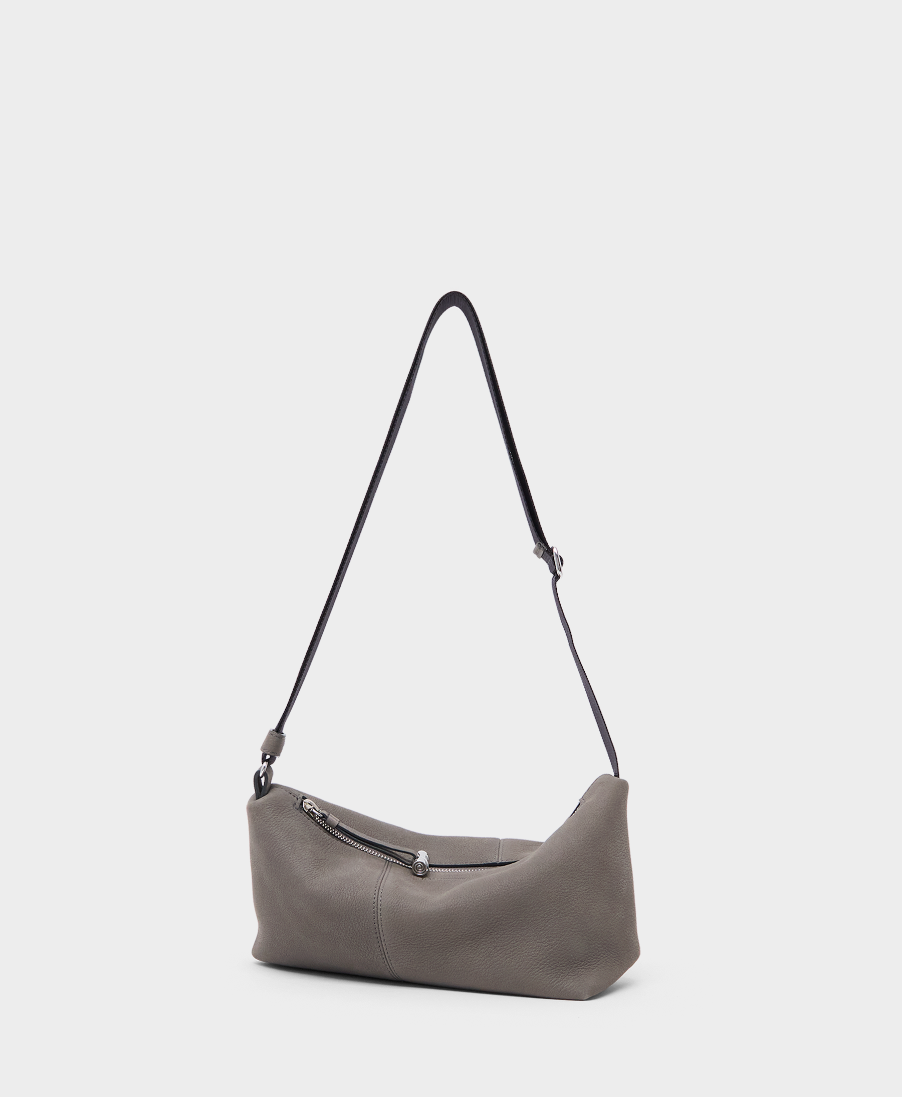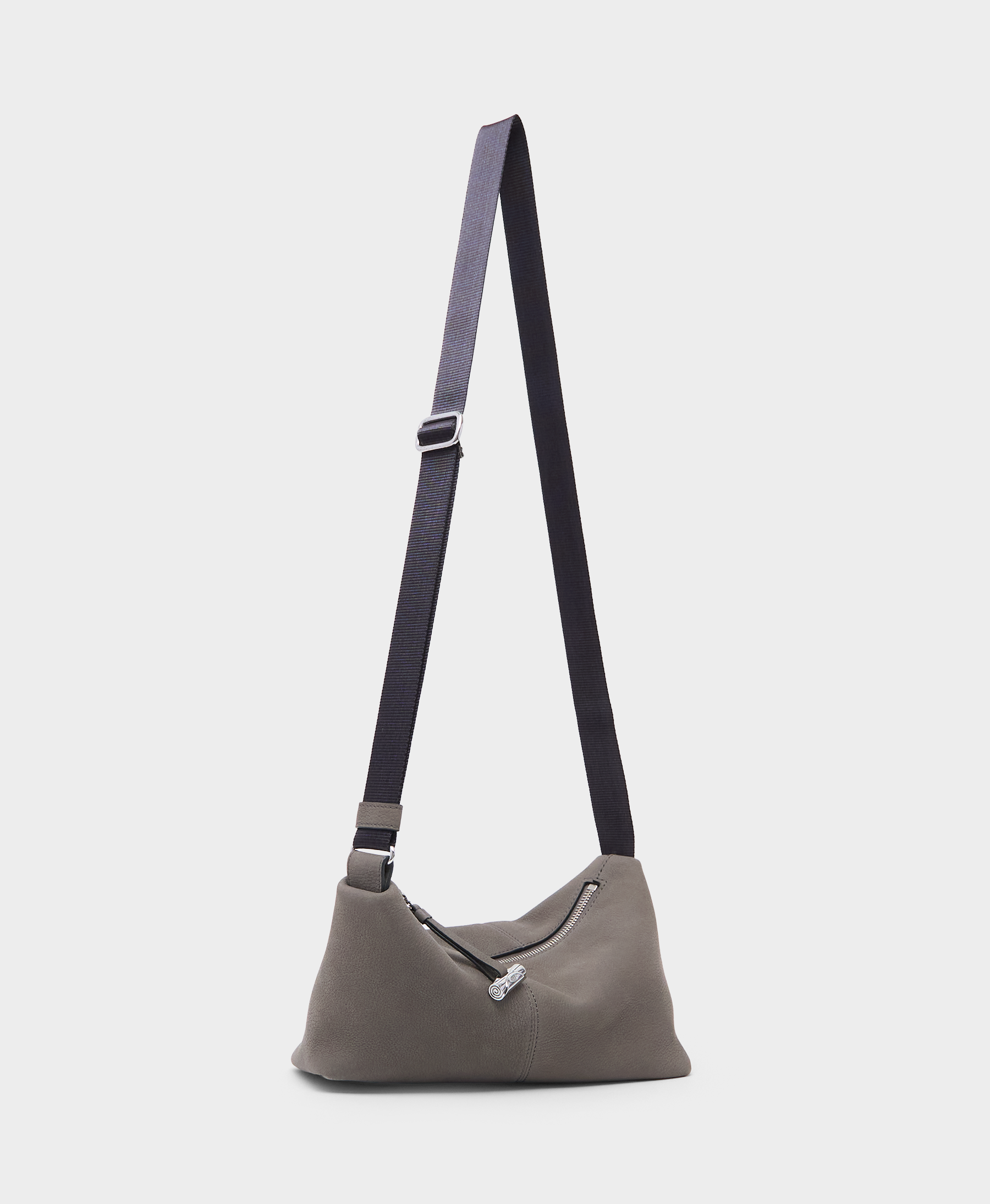 The Slide Twist in Concrete is a new unisex style for the season. A sportier, more understated take on the Disk Twist, it features an adjustable nylon strap with a sleek slider for effortless wear. Crafted from soft pebbled nubuck leather, the bag is finished with our signature brass toggle and offers generous adjustability, allowing it to be worn in multiple ways.