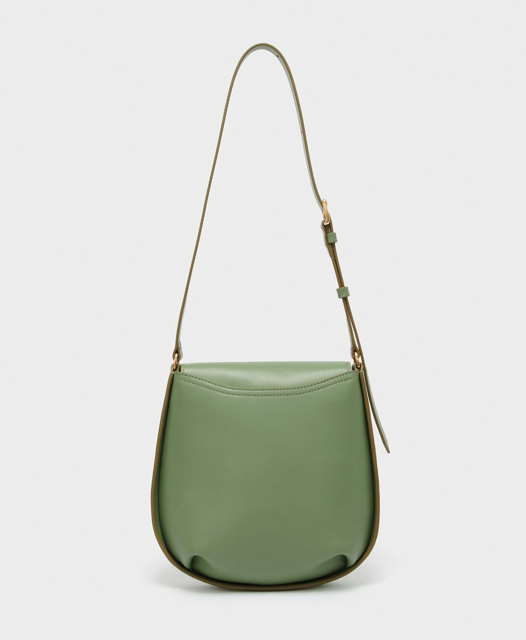 A stylish addition to our collection, the Small Dash in rosemary is a small version with a similar construction to its bigger sister, Dash. With a surface shape designed to emulate 'a dash of water', it is crafted from box calf leather and is finished with a suede lining. It features a magnetic closure and an adjustable strap for versatility allowing it to be worn on the shoulder and crossbody.