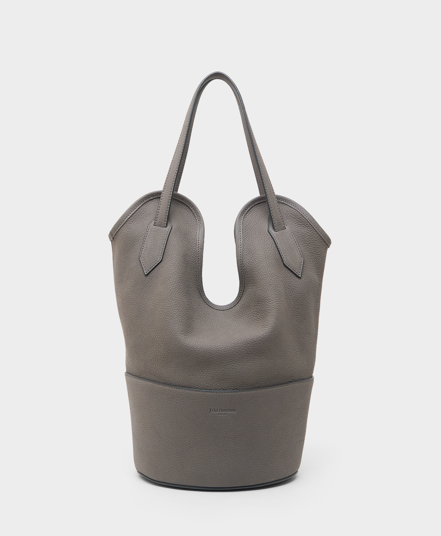 Taking its name from the stingray, whose shape it mimics, the Small Ray Bucket bag in concrete is a bucket bag made from two types of leather; the bottom is made from smooth calf and is lined with suede which is both durable and provides texture, and the upper area is made from soft and silky pebbled nubuck with a suede lining finish, allowing the bag to be folded and carried under the arm, clutch style. Smaller than our iconic Ray Bucket, the bag can accommodate a 13” laptop as well as everyday essentials.